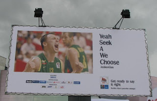 11. Na mieście można dojrzeć kilka plakatów z Sarasem Jasikeviciusem (foto by Marcin Józefczyk) i napisem "Yeah Seek A We Choose". Dopiero za piątym razem zrozumiałem o co chodzi w tej grze słów. Inne plakaty przedstawiały Dirka i napis "Know It's Key" oraz Ławrynowicza i napis "Love Renault We Choose".